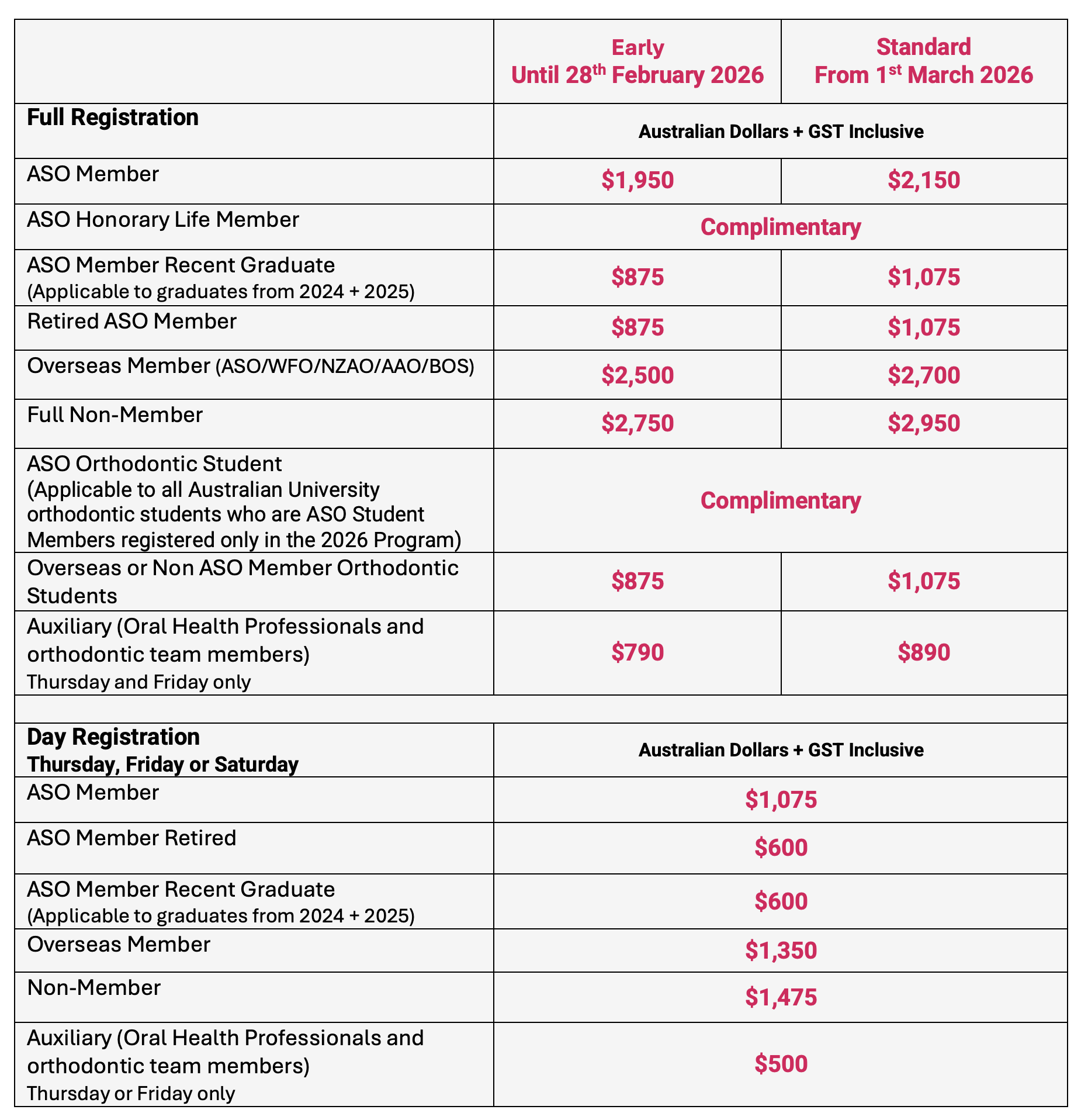 This rate is applicable to all orthodontic students registered only in the 2026 Program. Those that graduated in 2025 need to register at the recent graduate rate.